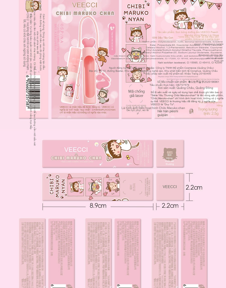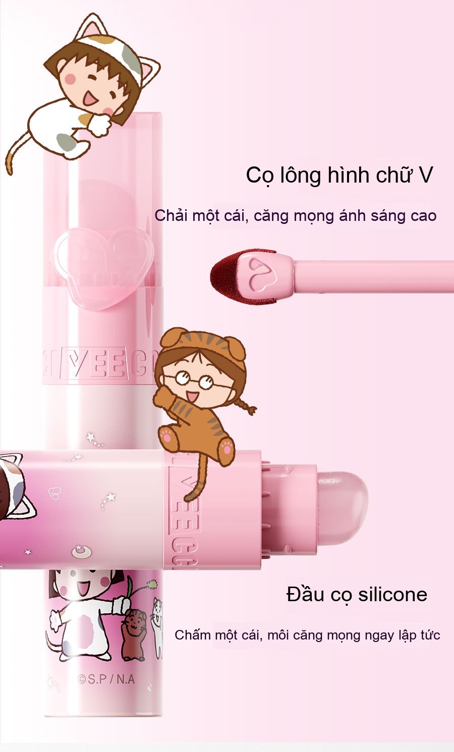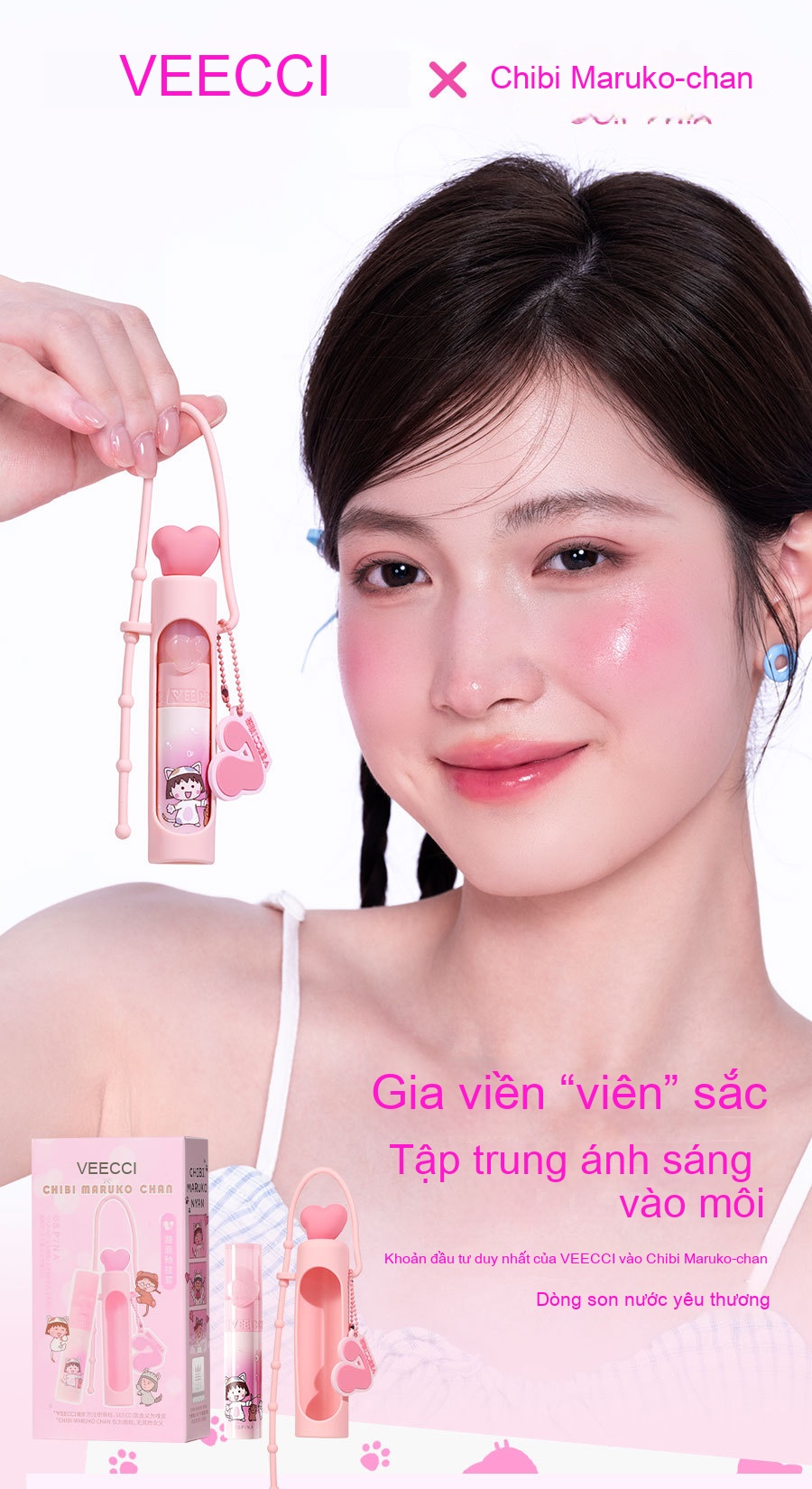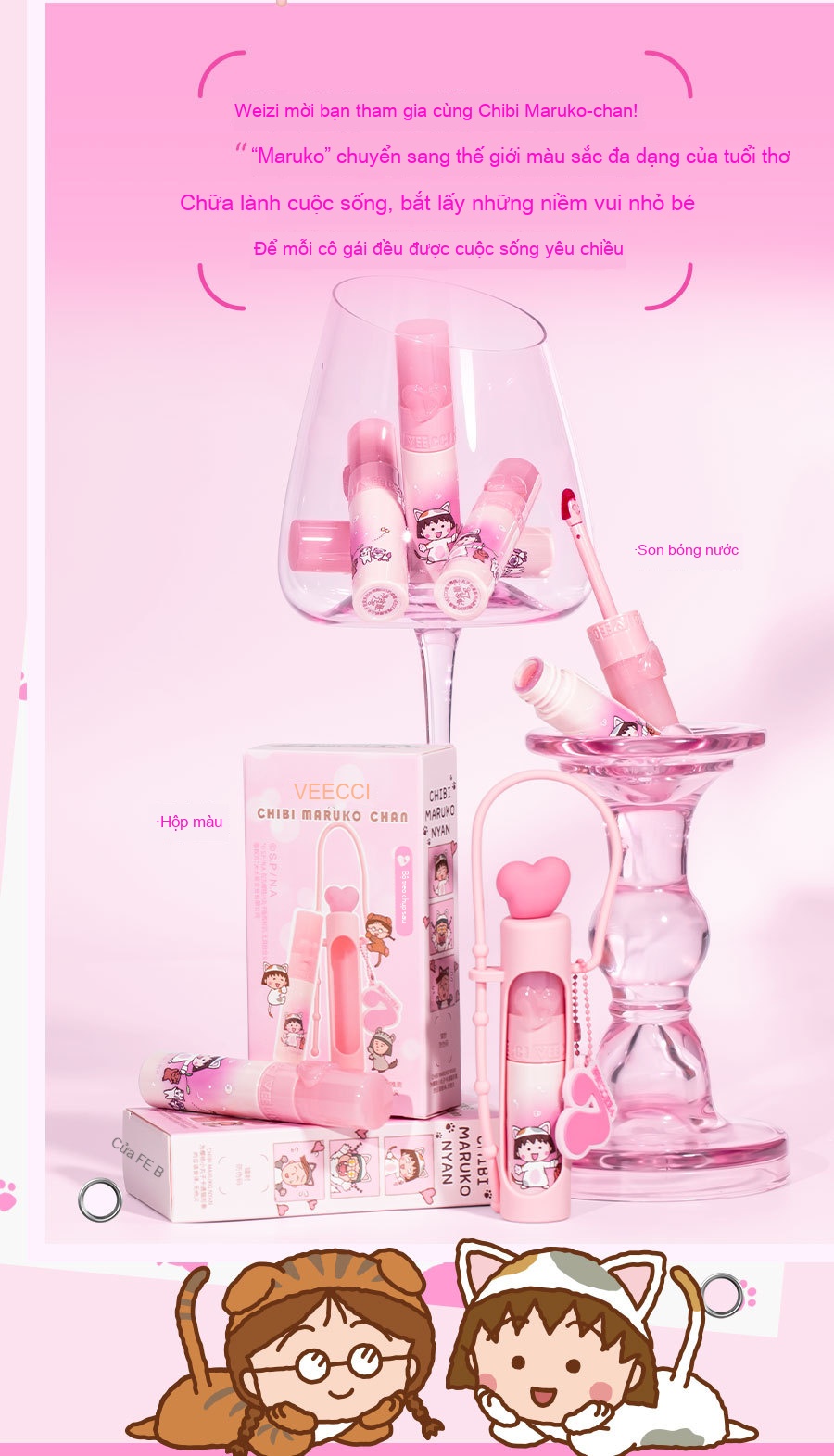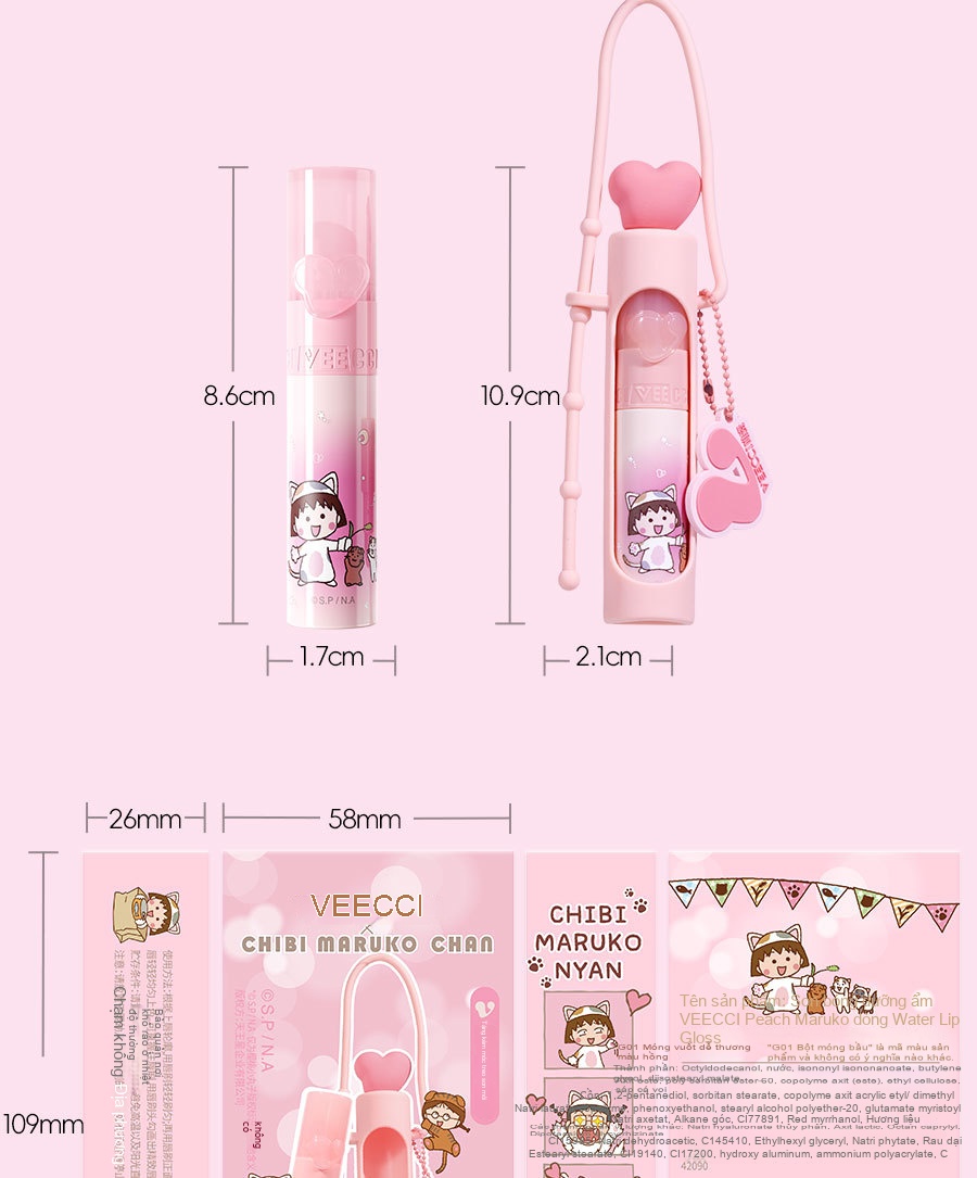 Tên sản phẩm: Weizi × Cherry Little Maruko IP Đồng thương hiệu Love Water Lip Glaze
