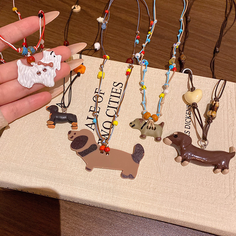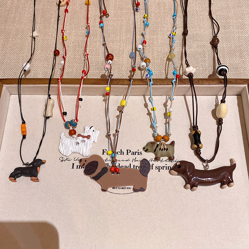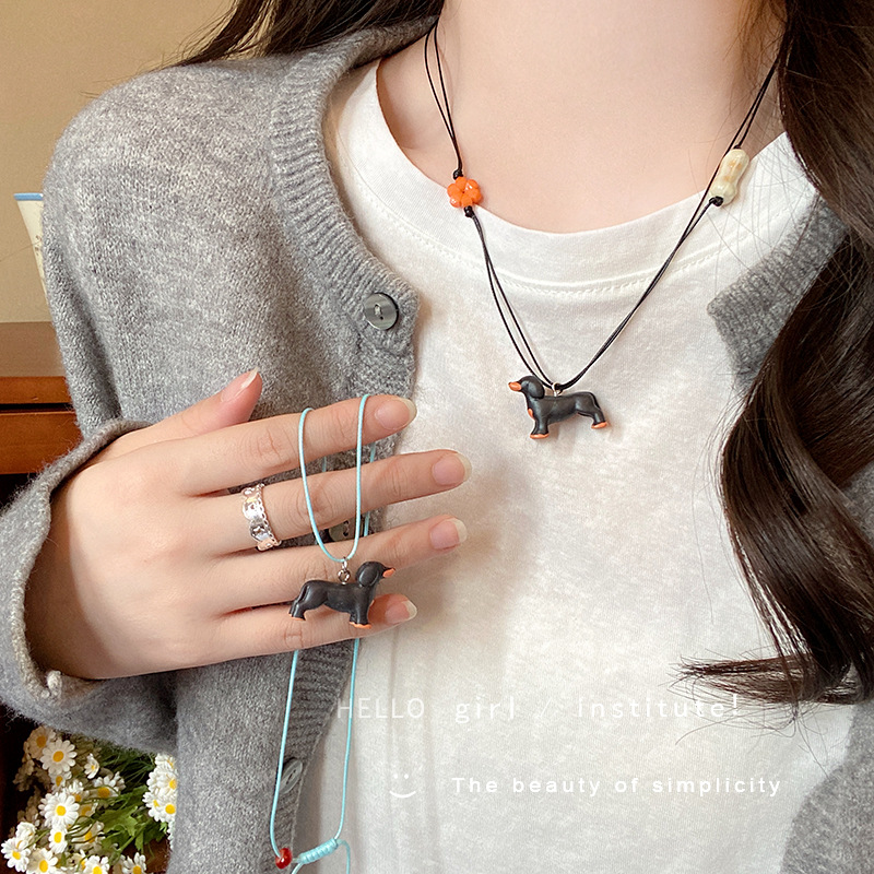 Vòng cổ mặt dây chuyền chó con dễ thương màu dopamine với váy với phụ kiện dây chuyền Áo len dài thiết kế dây chuyền xương đòn