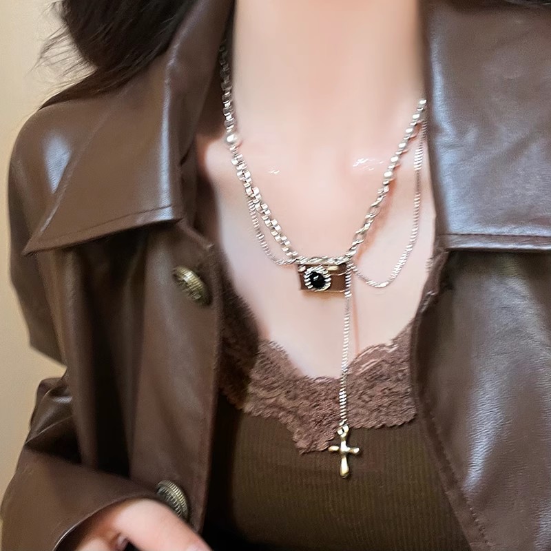 Vòng cổ máy ảnh âm thanh nổi cổ điển vui nhộn cho nữ phong cách hip-hop nhẹ nhàng sang trọng, thiết kế độc đáo, dây chuyền Áo len