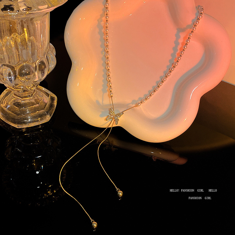 Vòng cổ ngọc trai bằng thép Titan Instagram mới của Hàn Quốc nữ sang trọng nhẹ nhàng người nổi tiếng trên mạng công cộng nhỏ cùng kiểu với vòng tua Bướm đầy kim cương