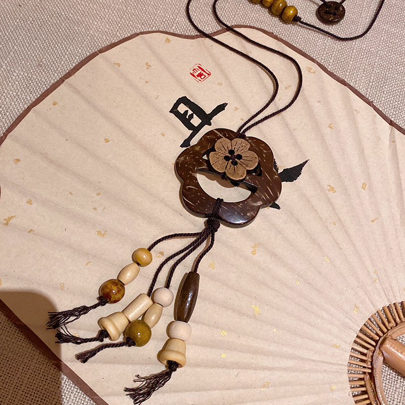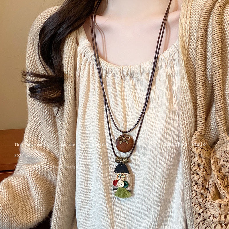 Vòng cổ phong cách dân tộc ngoại lai Zen phong cách Trung Quốc mới Phụ kiện dây chuyền áo len dáng dài xếp chồng hai lớp phong cách Bohemian cho nữ