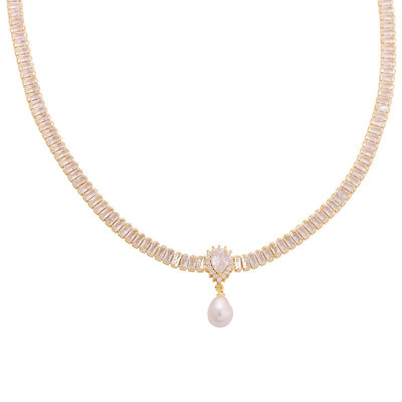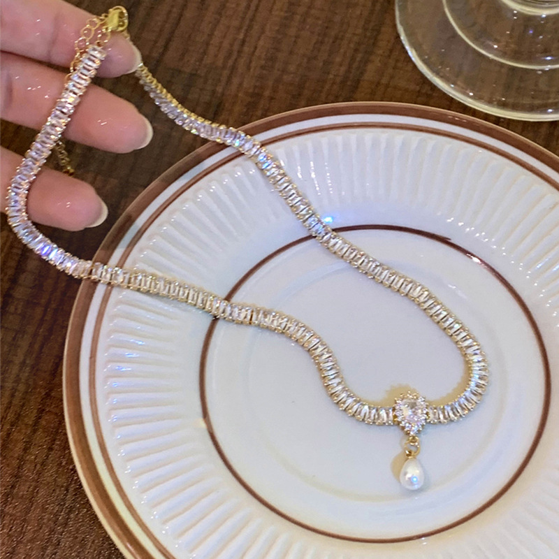 Vòng Cổ Zircon phong cách Hepburn kiểu Pháp, Vòng Cổ Ngọc Trai hình giọt nước cảm giác thiết kế cao cấp sang trọng nhẹ nhàng, Vòng Cổ nổi tiếng trên mạng